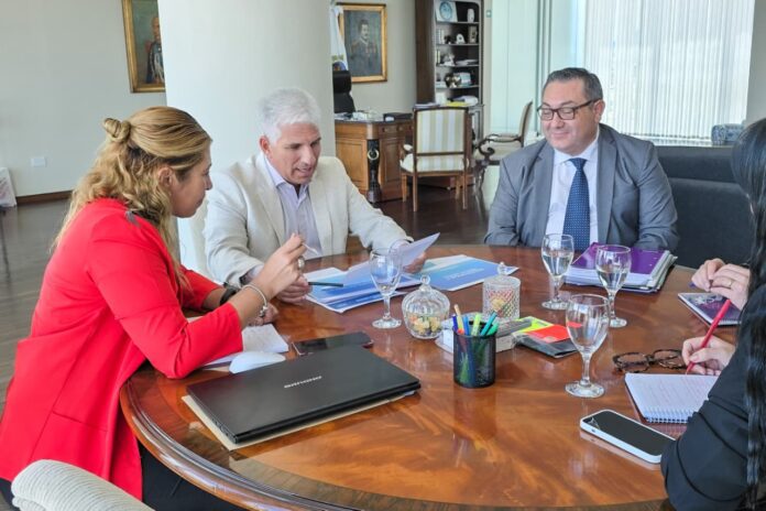 El gobernador Claudio Poggi se reunió con la secretaria de Legal y Técnica, Natalia Carranza, y el director del Boletín Oficial, Gustavo Farías, para interiorizarse sobre los avances de un proyecto que busca mejorar la accesibilidad del Boletín Oficial en su formato digital.