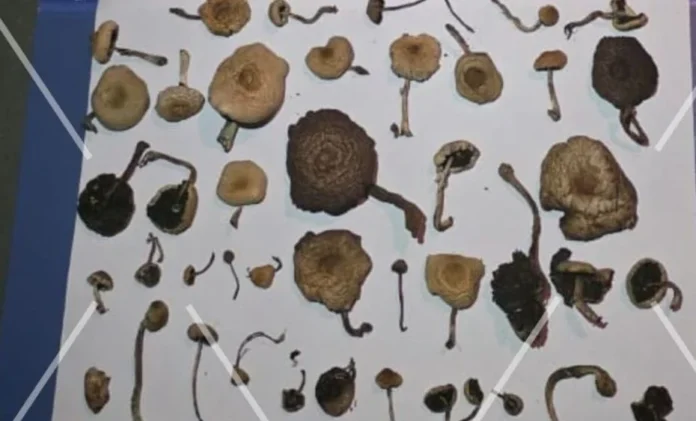 Al revisar el vehículo, un can detector de narcóticos marcó una mochila camuflada. En su interior, los efectivos encontraron una bolsa de nylon transparente con un total de 88 hongos alucinógenos.